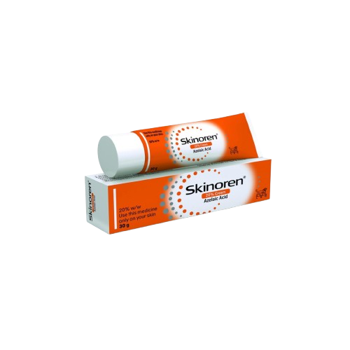 Skinoren is a gel applied to the skin that contains azelaic acid, formulated to manage mild to moderate acne and rosacea. It works by targeting the bacteria that cause breakouts and calming inflammation, while also helping to clear clogged pores and improve overall skin texture.